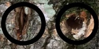 Une fois le chalumeau retiré, l'aubier se referme en quelque heures par la pression interne de l'arbre. A gauche, on voit la fente dans l'écorce mais en arriere, l'aubier est refermé. A droite, le trou 5/16" pour la methode traditionelle restera ouvert plusieurs années.
